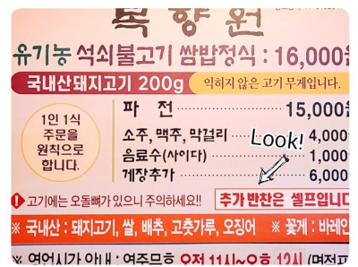 메뉴판이 있지만 단일 메뉴라 몇 인분 주세요 라고만 말하면 되더라고요. 저희가 테이블에 앉자마자