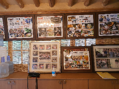 안내해준 곳으로 들어가니 입구에 TV매체에 노출된 모습을 사진으로 진열해 놓았네요. 방송으로 많이 한 것 같은데 웬만한 음식 관련 방송 사진은 거의 다 있는 것 같아요.