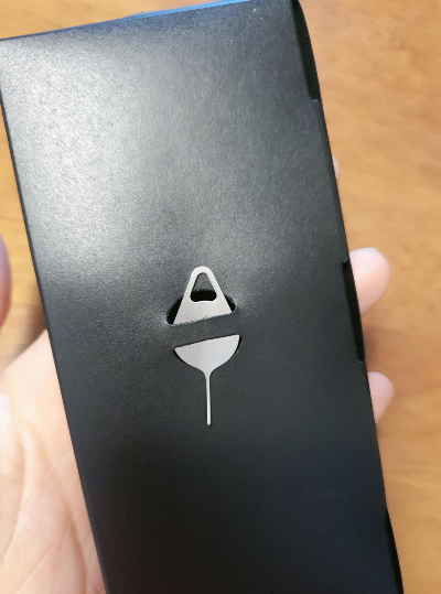 본체 밑에 같이 들어있는 유심칩 제거하는 핀으로 구멍에 넣어 유심칩 넣는 서랍을 빼줍니다.