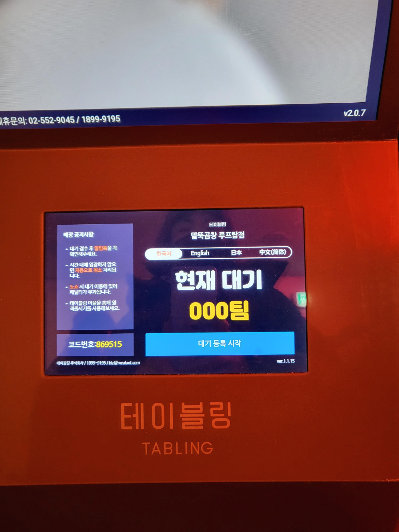 저희는 저녁 5시쯤 들어갔는데 대기를 한눈에 볼 수 있는 시스템이 편리할 것 같아요.