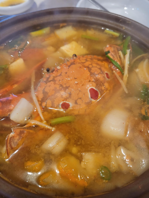 해물탕은 끓기 전에 사진을 찍어서인지 비주얼은 좀 떨어지지만 맛도 좋았고 심지어 꽃게 한 마리가 가운데 떡하니 자리를 잡고 있더라고요. 저 한 마리의 꽃게 덕분에 얼마나 시원할지 상상이 가시죠?