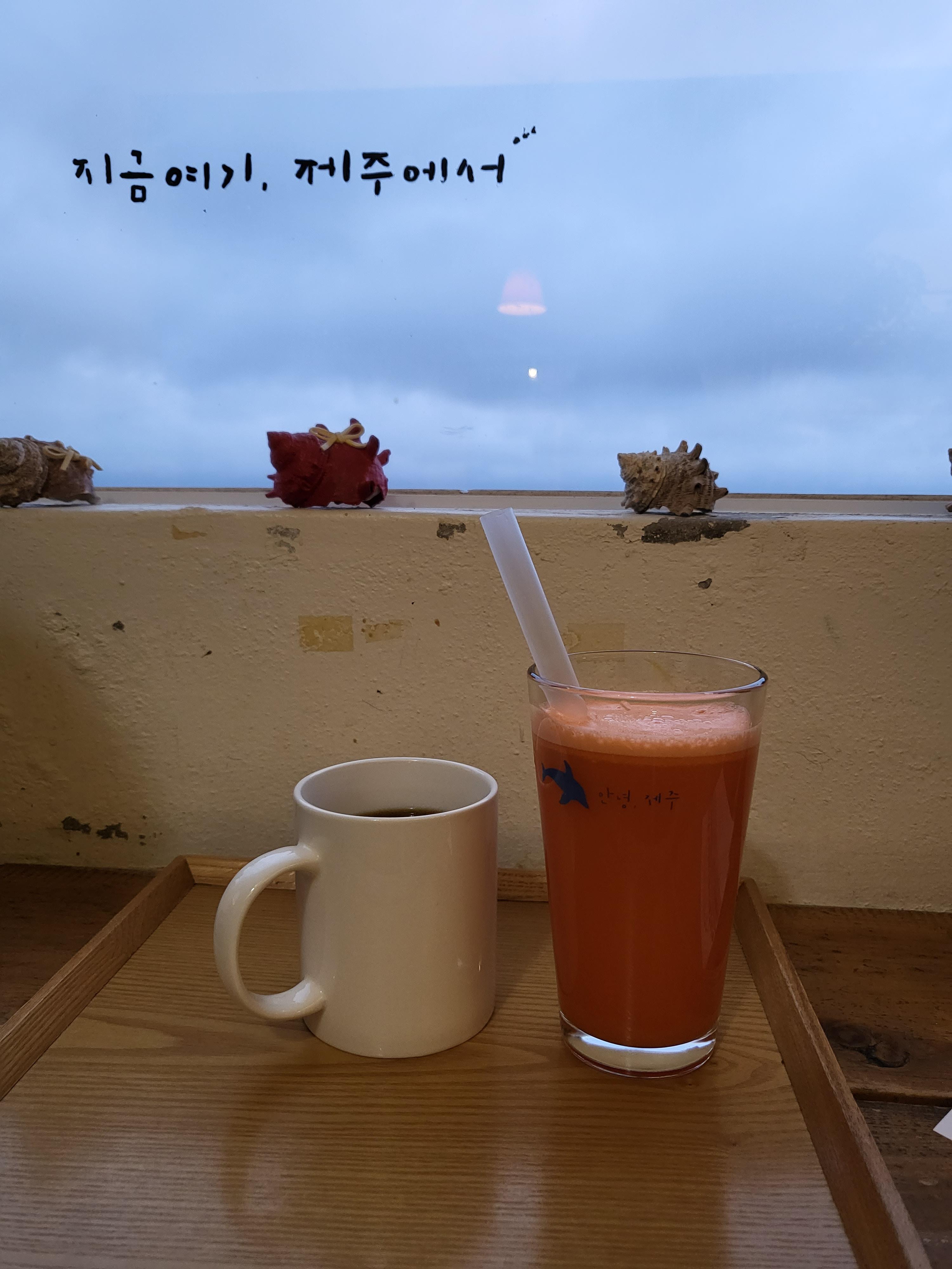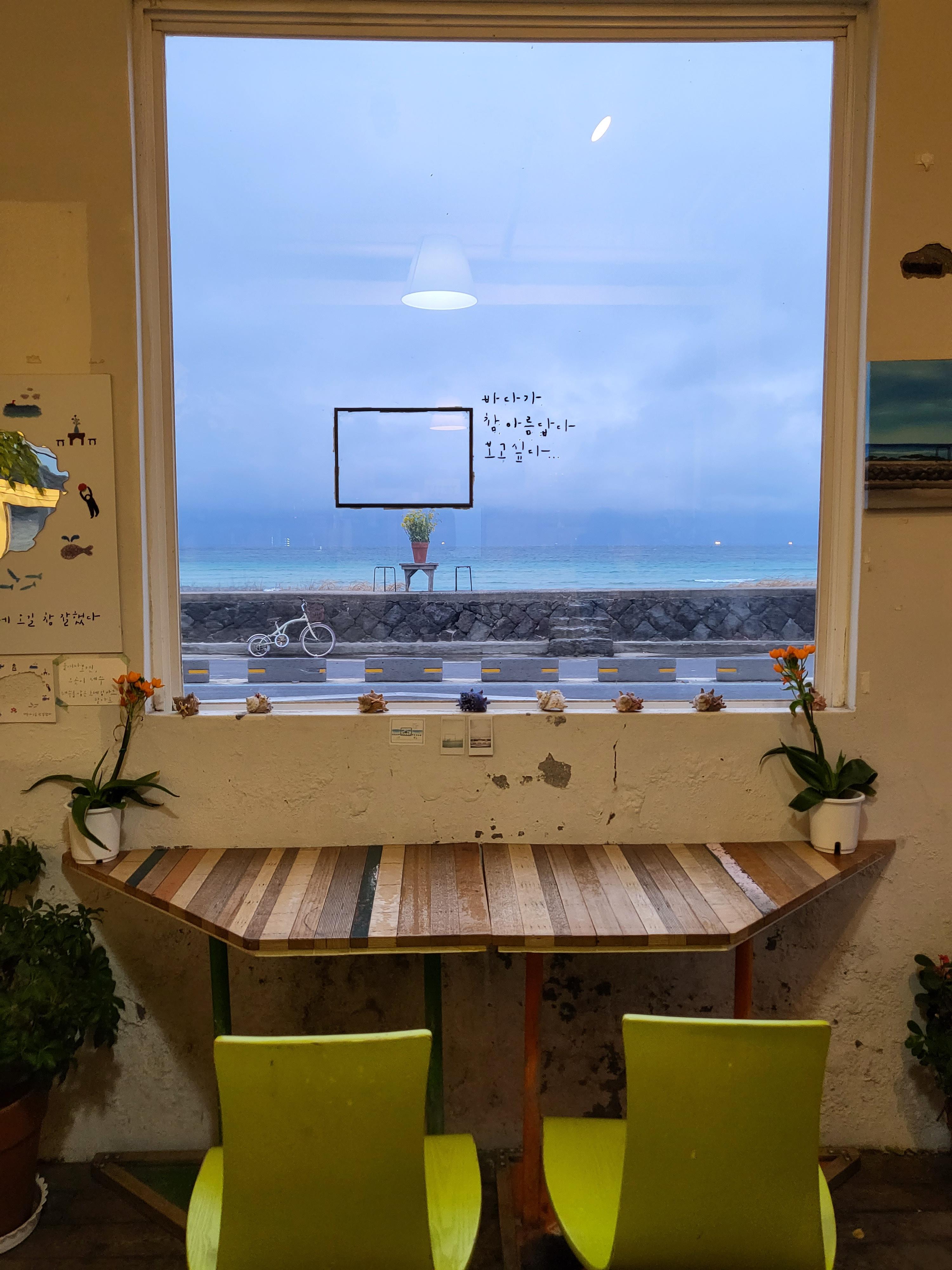 창가 자리에 앉아 바라보는 풍경이 너무 이뻤어요. 앞에 보이는 바다를 보고 있으니 하루 종일 앉아있어도 시간 가는 줄 모르고 바다 멍 해도 좋겠더라고요.