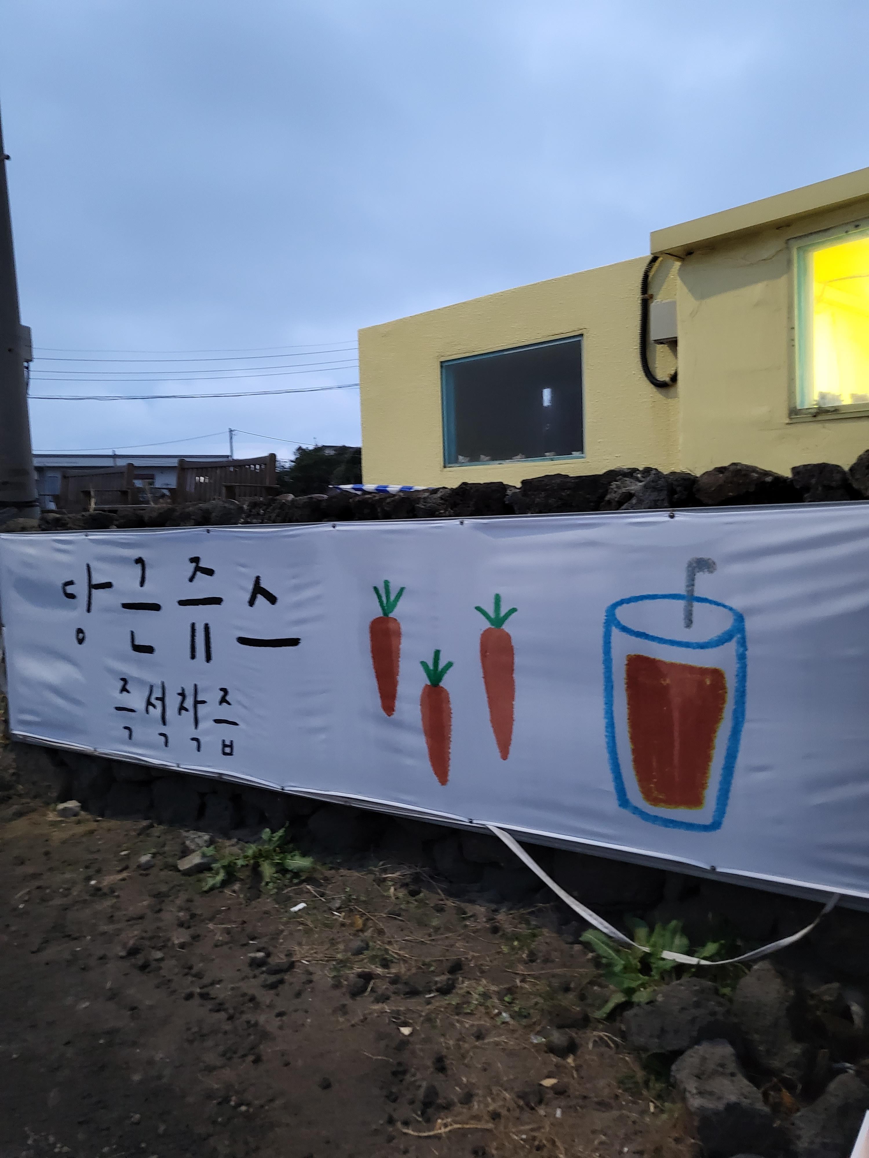 외관부터 노란색과 흰색의 인테리어가 눈길을 끄는데요. 특히 당근 주스의 간판과 손그림 느낌의 벽화가 맘에 들었어요.