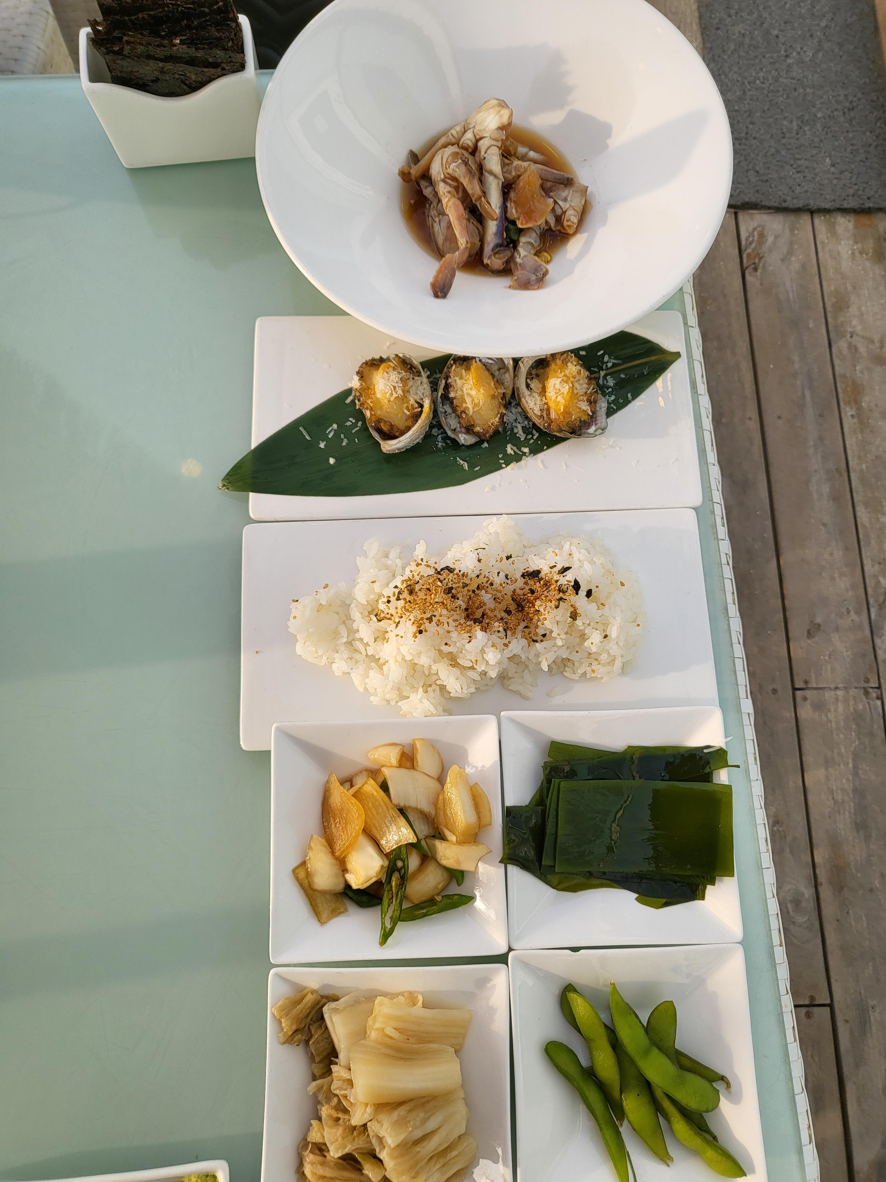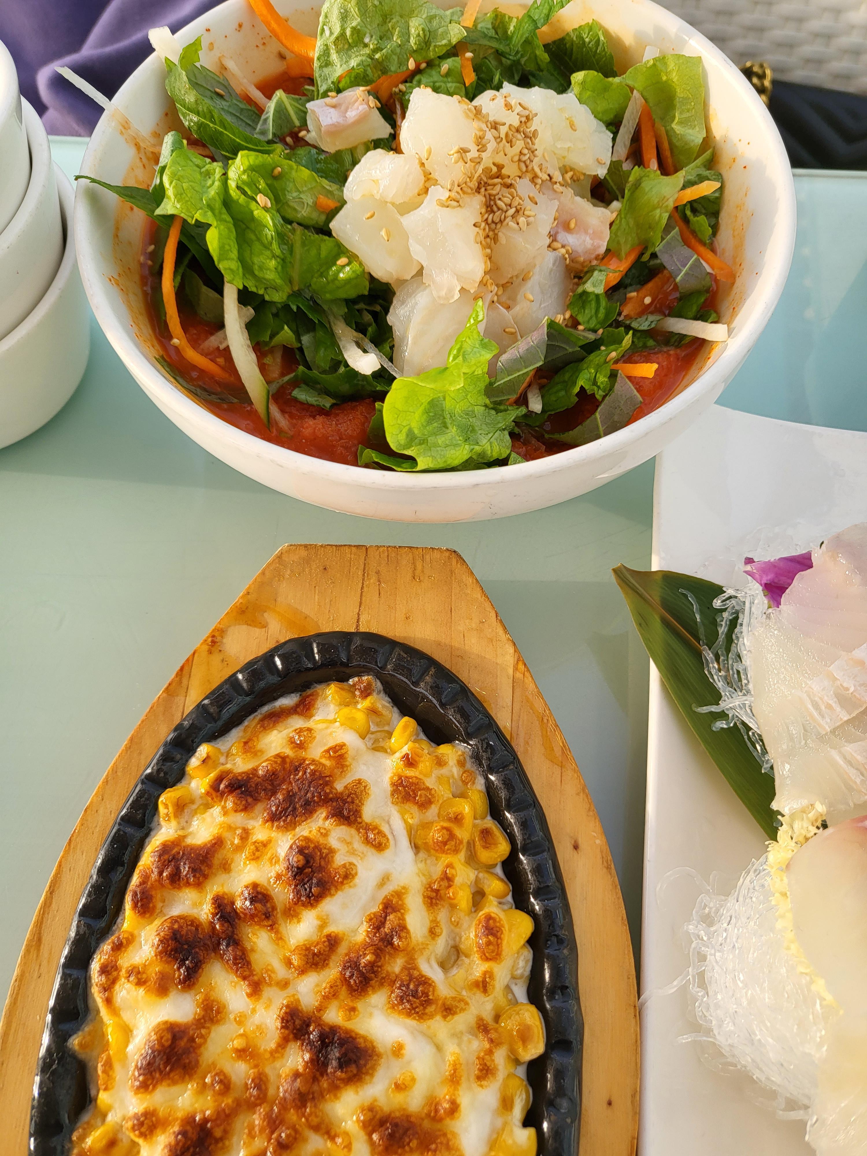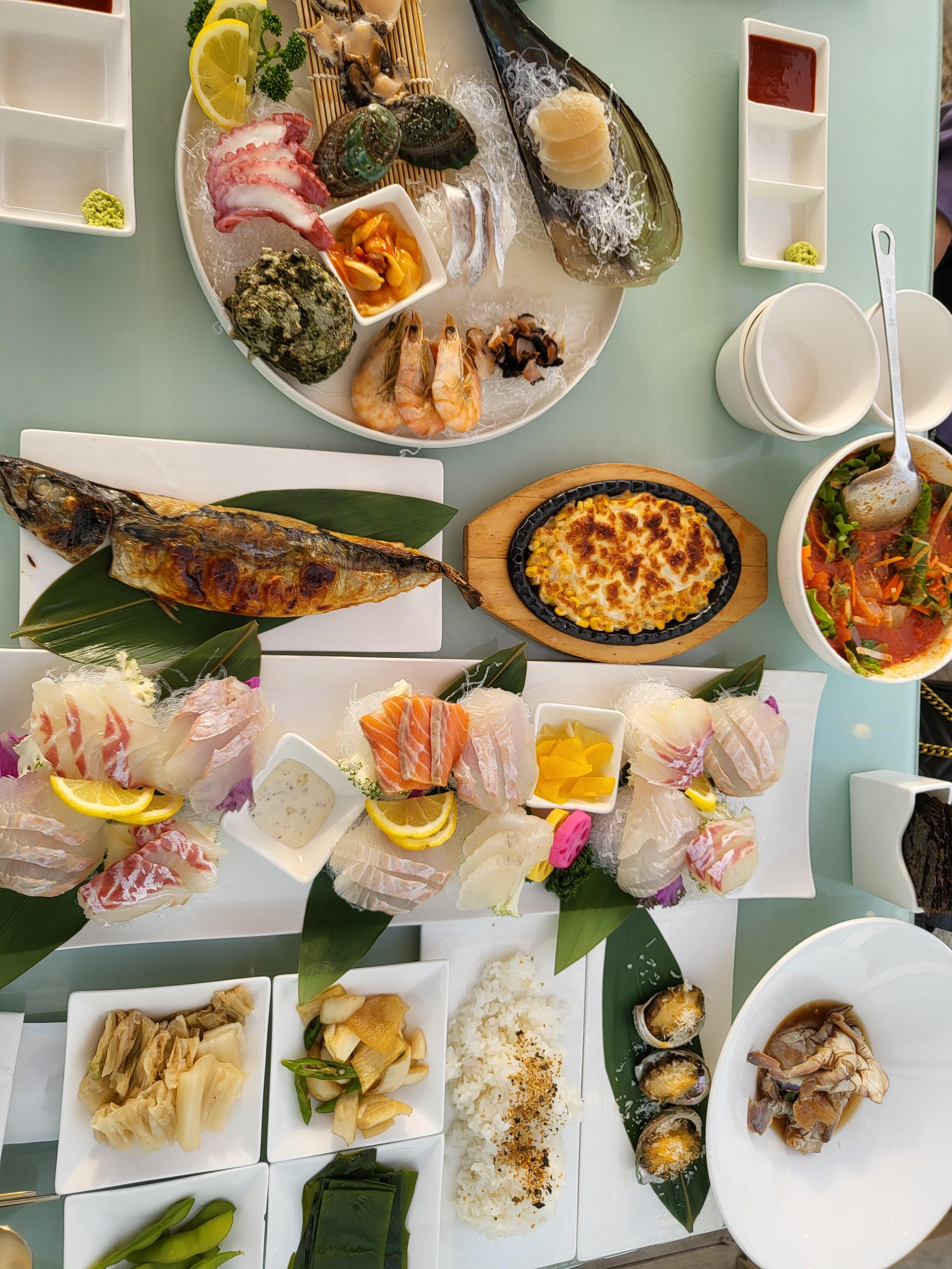 모든 음식이 나왔어요. 너무 멋있지 않나요? 바다를 보며 좋아하는 회도 먹고 분위기도 너무너무 좋았답니다.