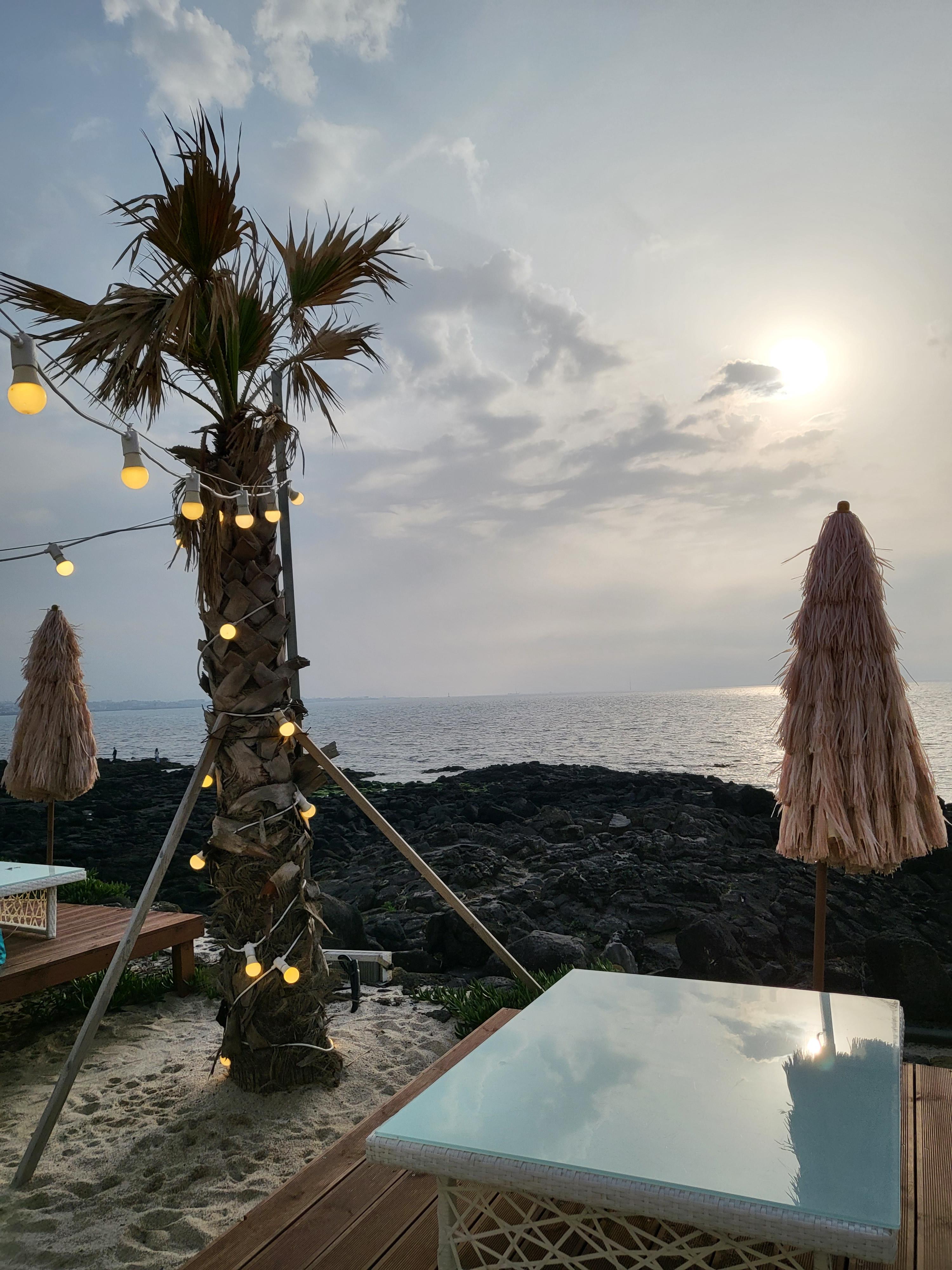 바다를 바라보며 보이는 풍경이 너무너무 이뻐서 사실 바람만 조금 덜 불면 좋았겠지만 이렇게 제주에서 이런 분위기와 감성을 느낄 수 있으니 너무 너무 좋더라고요.