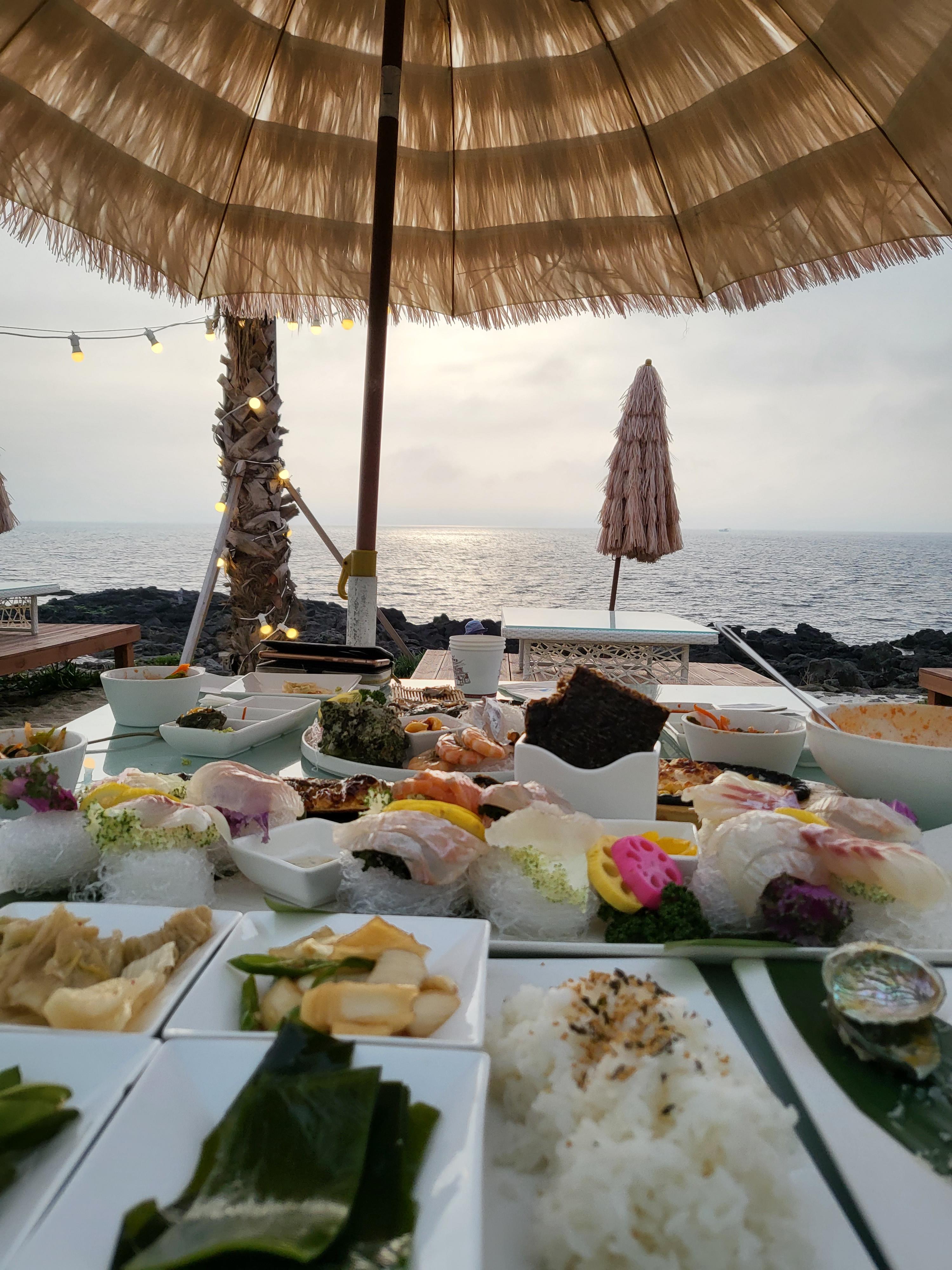 바다를 배경으로 마련된 테이블은 정말 해외여행 온 기분이에요.