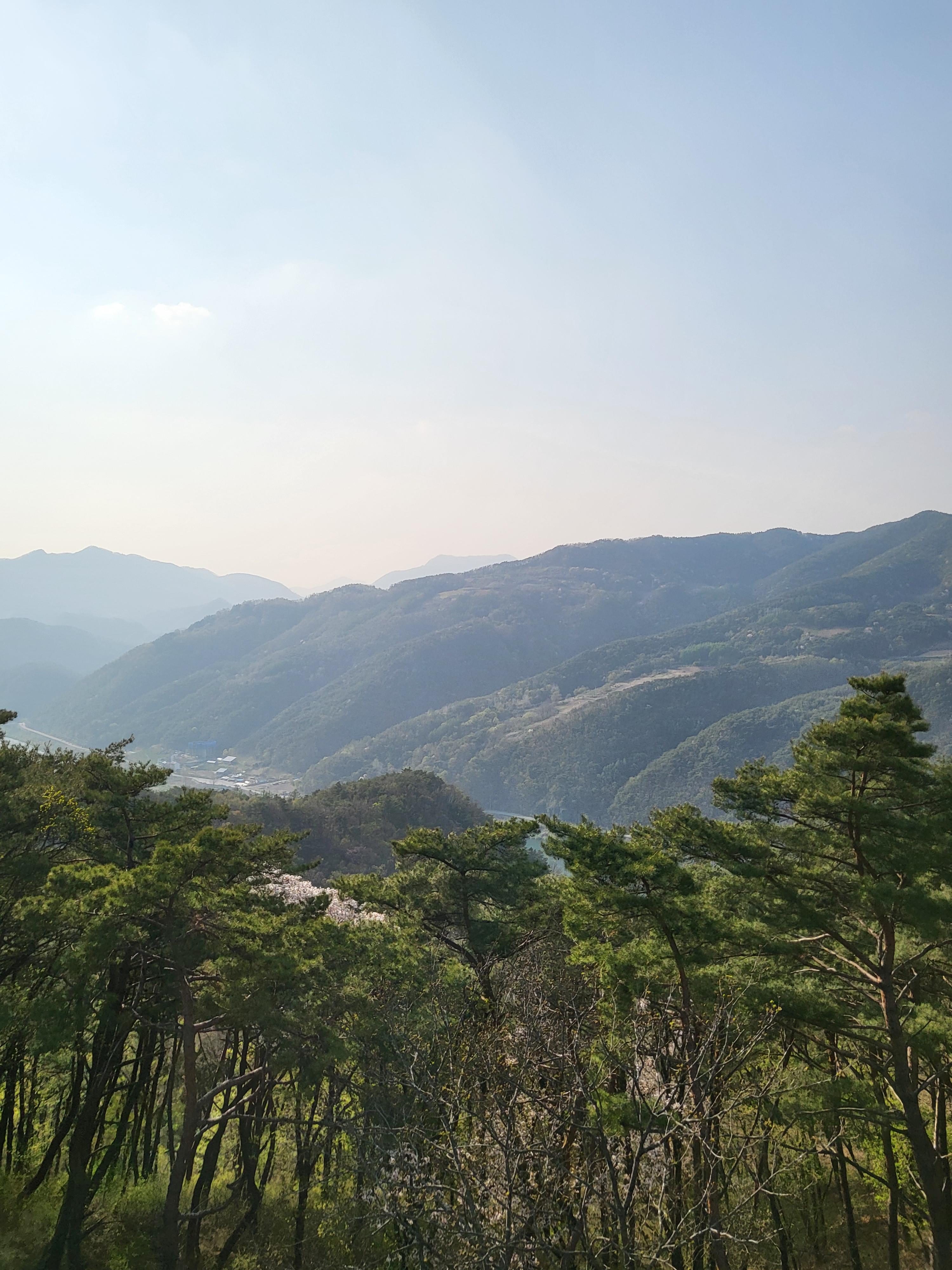숙소에서 바라보는 모습이에요. 깊은 산골짜기에 저 멀리 강줄기도 보이네요.