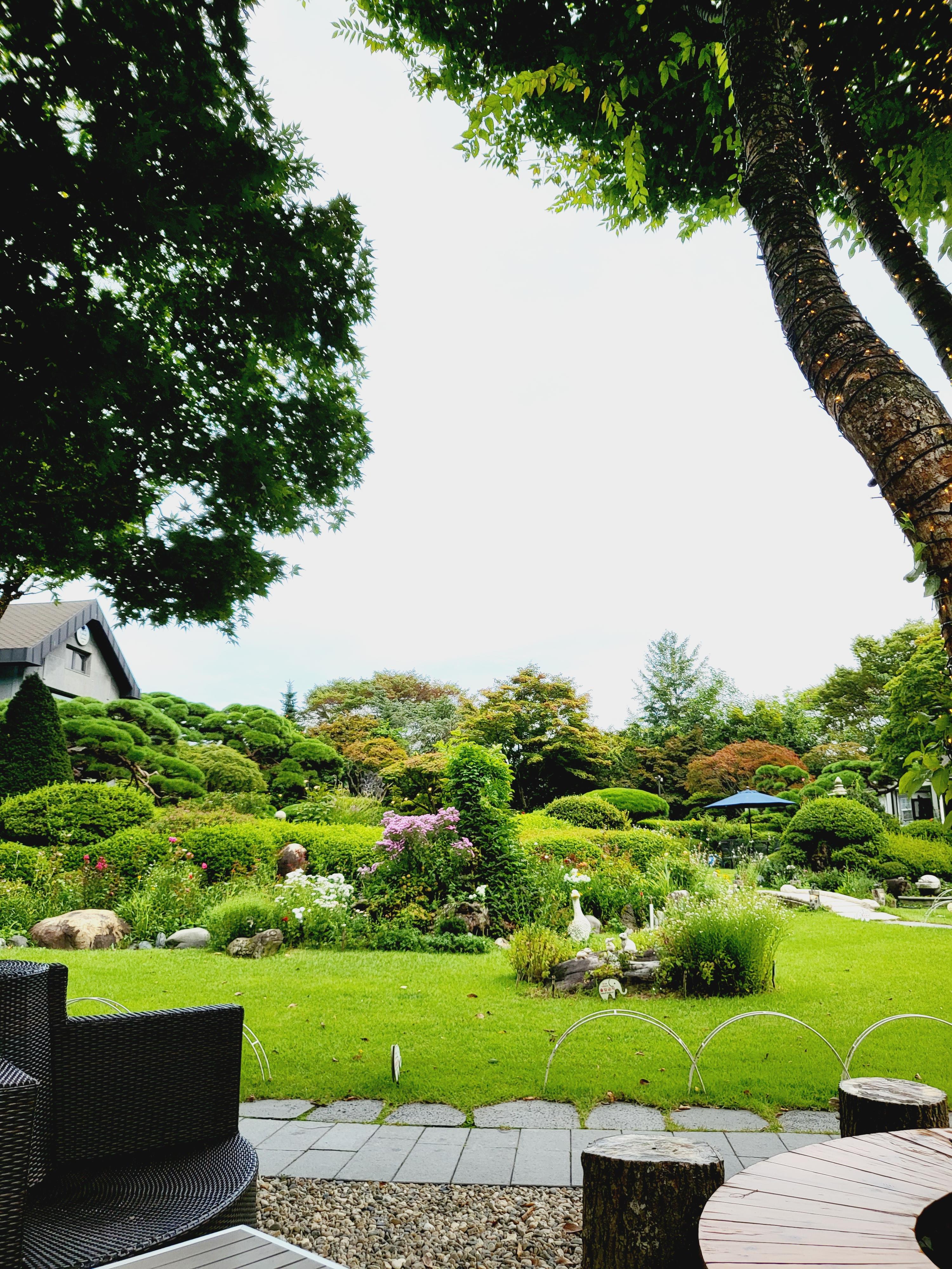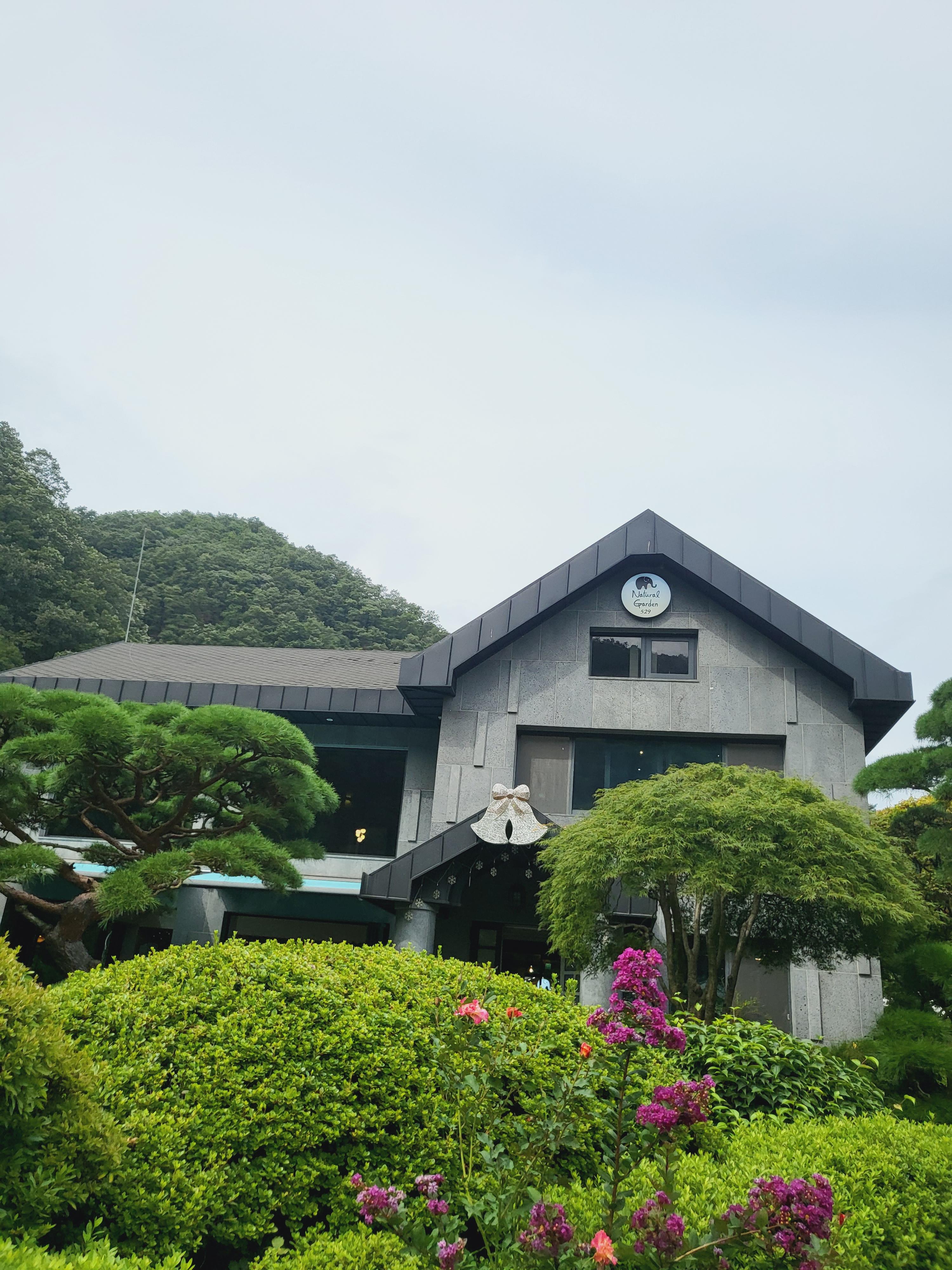 내츄럴가든529의 야외는 산을 바라보며 자연을 느낄 수 있는 그런 카페인데요. 조경이 잘 조성되어 있어 관리가 잘된 느낌이에요. 정원 같은 카페에서 힐링할 수 있어 참 좋네요.