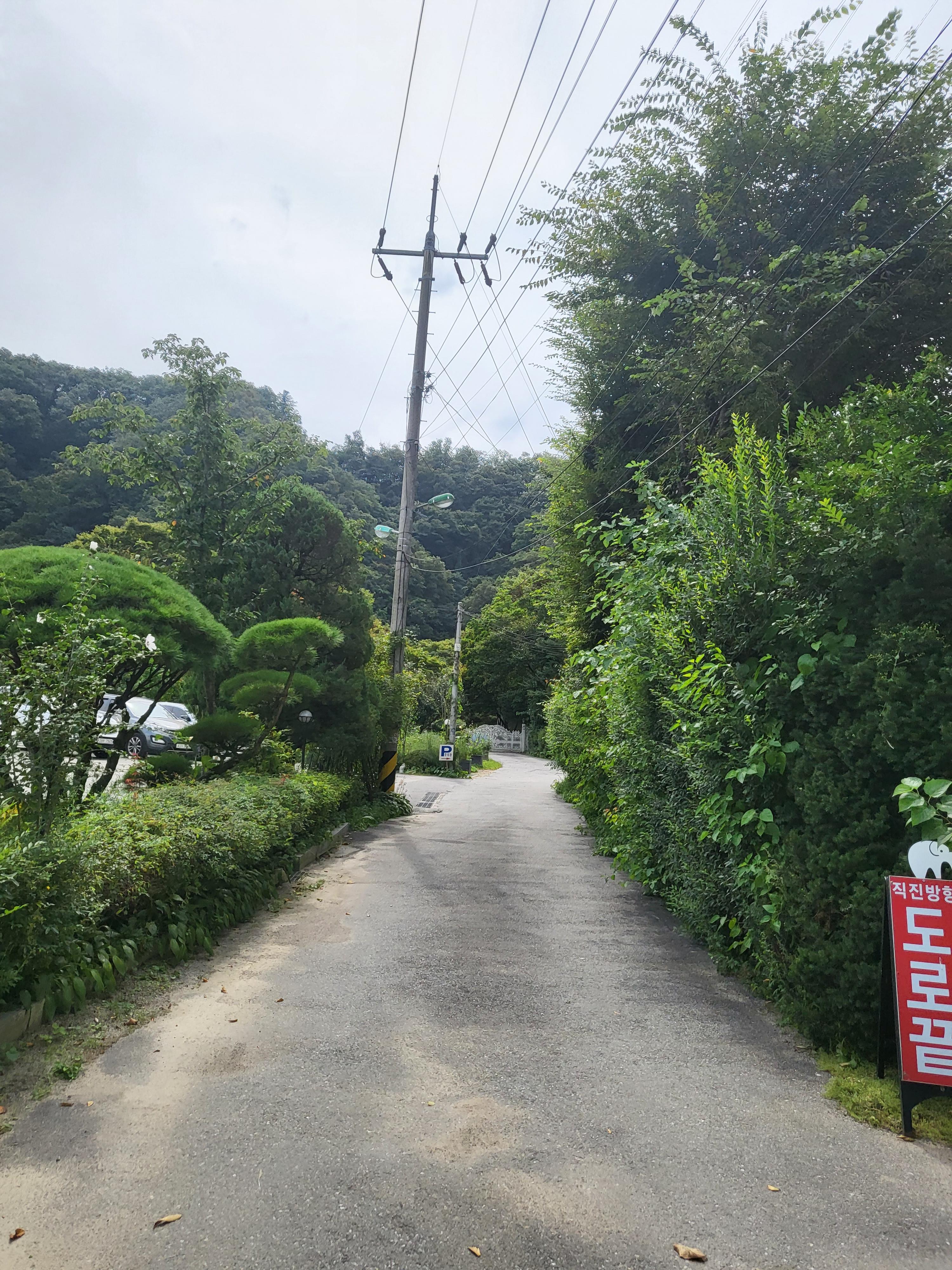 주차를 한 후 길을 따라 내추럴가든529 카페로 걸어가는 길은 시골길을 걸어가는 듯한 느낌이라 좋네요.