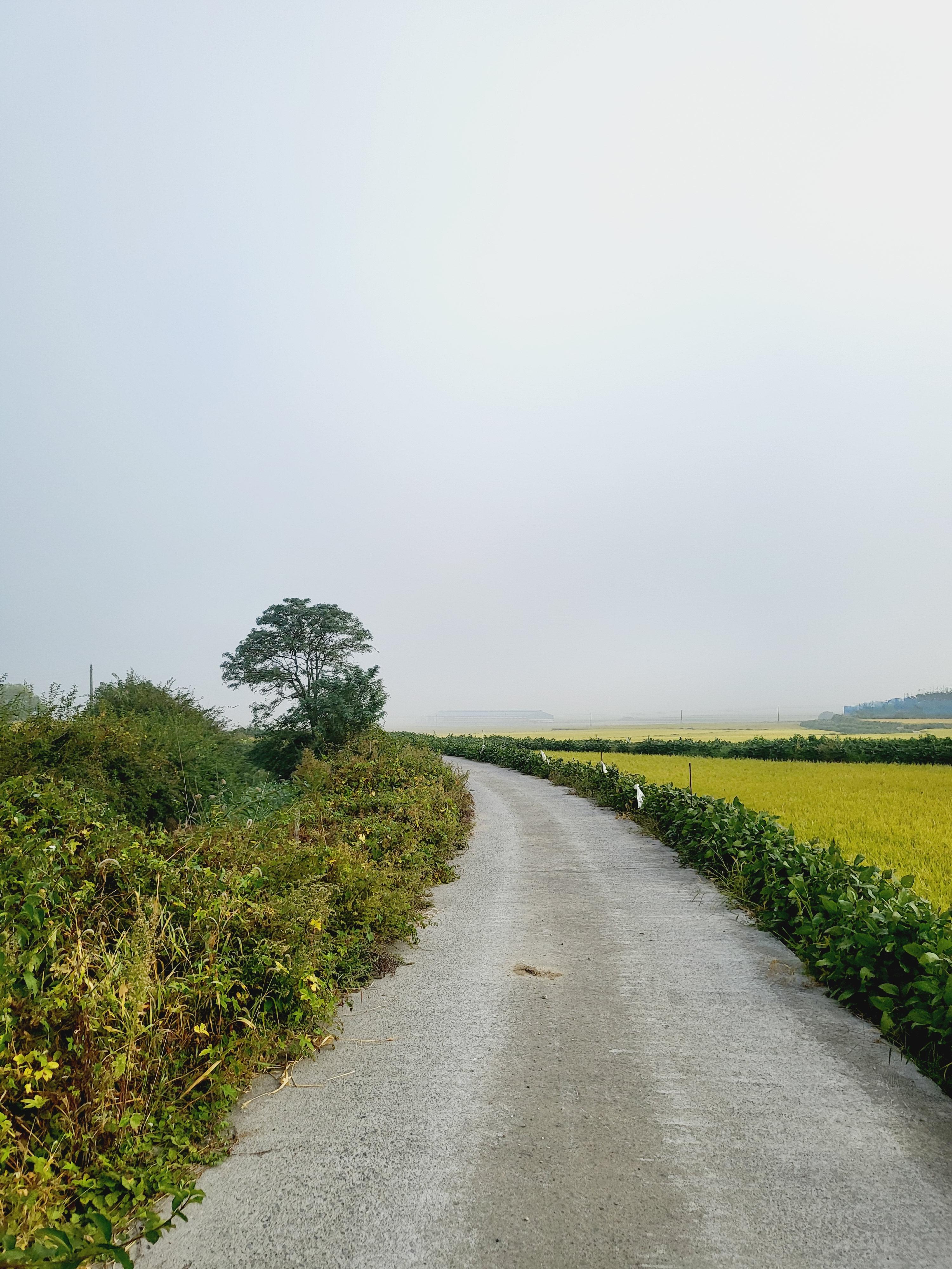 다음날 아침에는 시골길을 산책하였어요. 미세먼지와 안개가 자욱했던 날씨였지만 그래도 시골길에 대한 로망이 있어 한참을 걸으며 산책했답니다.