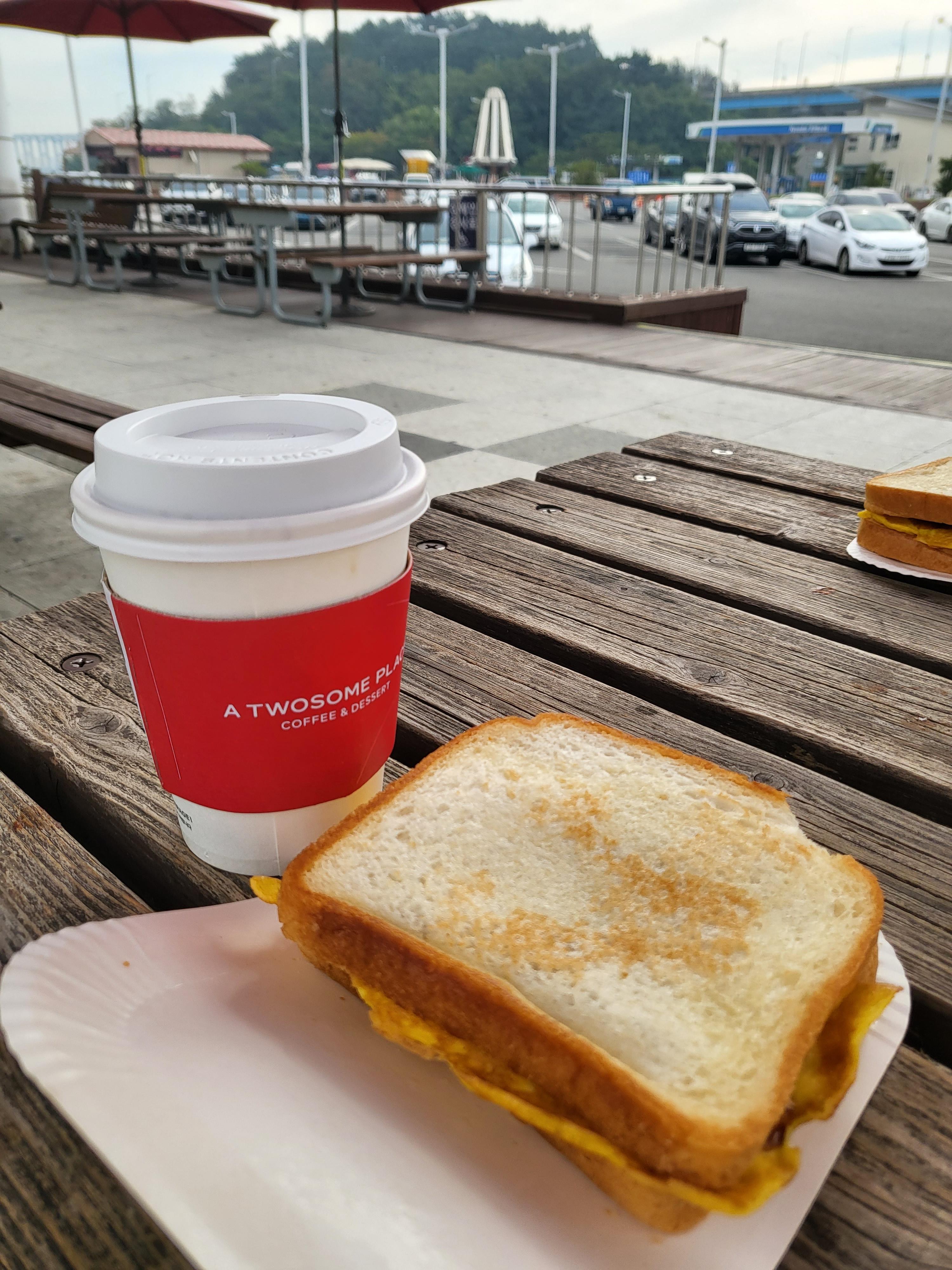 커피와 토스트로 간단하게 먹었어요. 휴게소에서 마시는 커피는 정말 꿀맛인 것 같아요.
